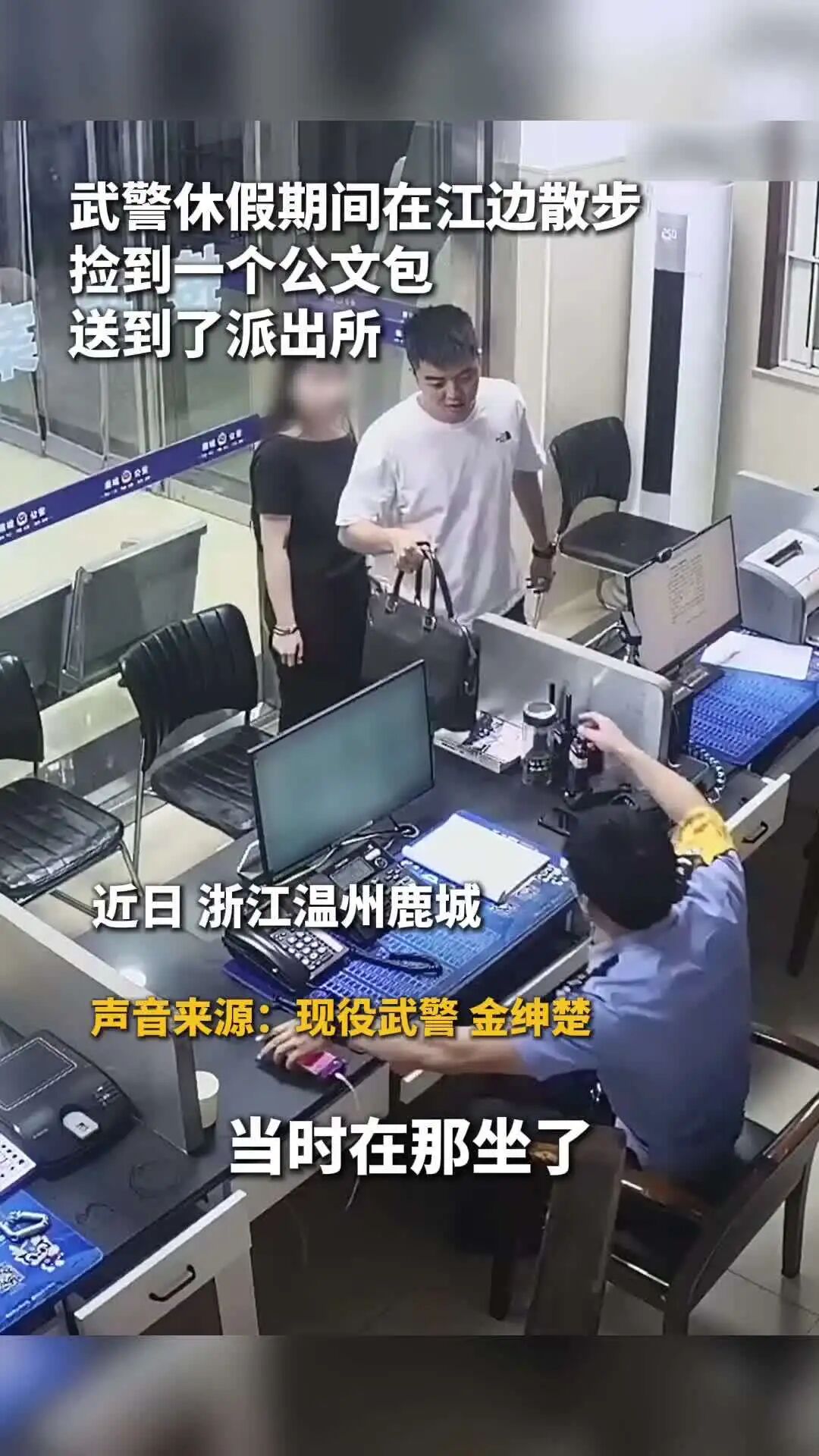 原来,捡拾到公文包的是一名现役武警金先生,休假的他当晚正在江边散步。“当时在那里坐了二十多分钟,没人来拿,就想着肯定是有人落这里了。”金先生说道。