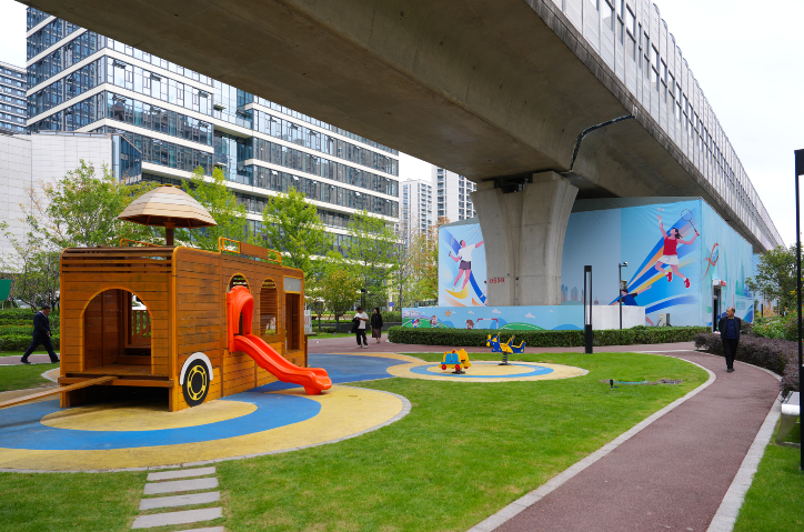 列车呼啸而过,轨道交通S1线黄屿段的风驰声,与桥下空间的热闹人声相融交织。这里曾是废弃的“城市疤点”,如今却变身儿童乐园、羽毛球馆、火车餐吧,是一处集运动休闲、滨水生态、社区服务、铁路文化于一体的桥下邻里休闲街区。
