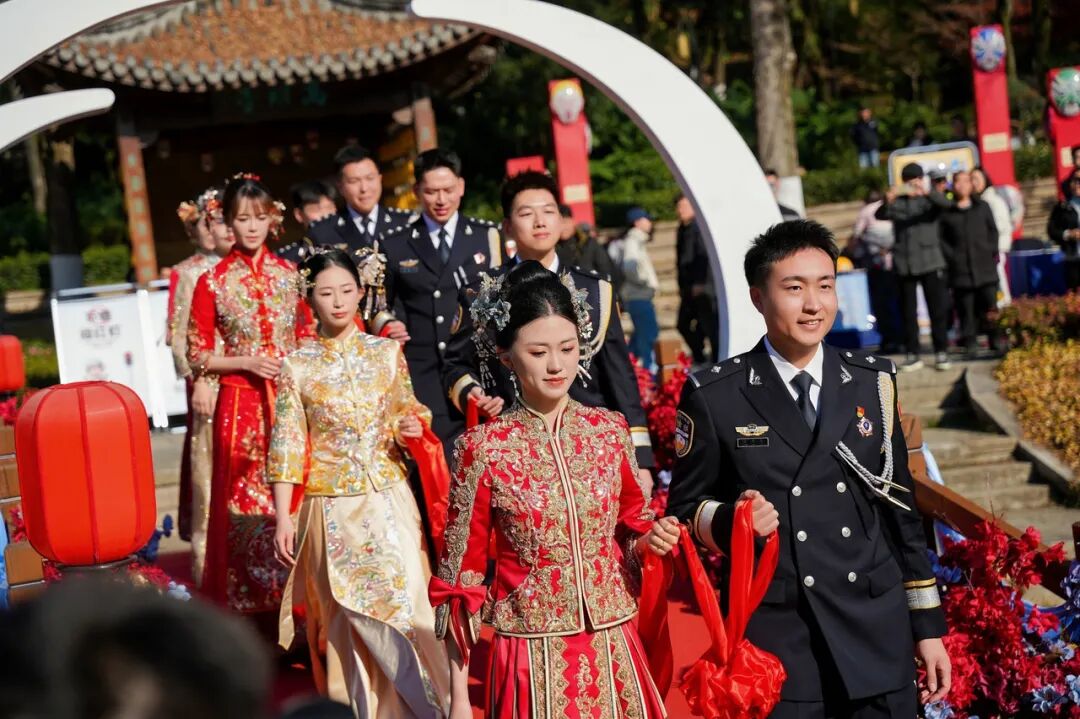 在属于警察的节日里,这对并肩作战的夫妻,手挽手走上九山书会的戏台,在战友和亲友们的祝福中,完成了这场迟来却温馨满满的婚礼。