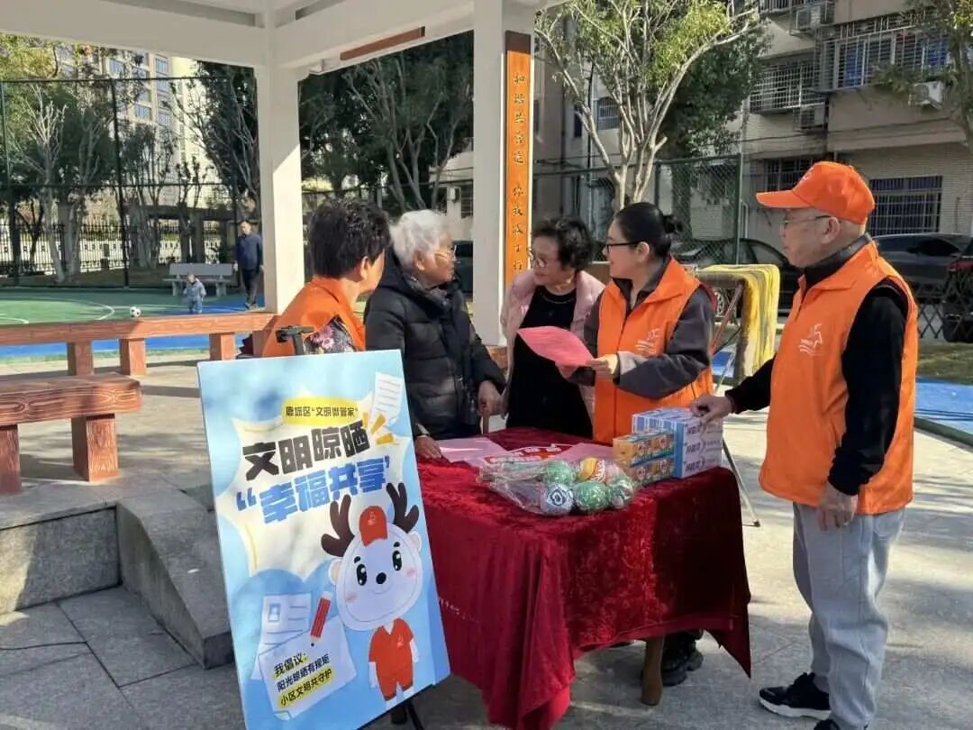 依托“文明实践四季行”精准配送机制,中心整合区域内理论宣讲、文化文艺、医疗健康、科普法律等优质资源,形成“服务菜单”,实行“群众点单、中心派单、团队接单”的运作模式,将义诊、法律科普、反诈宣传、文艺演出等多元化服务精准送达基层。同时,中心深度联动“文明微管家”项目,围绕“文明晾晒”、“文明养犬”等每月主题,引导居民开展邻里互助、环境美化,提升了小区自我管理、自我服务的能力。