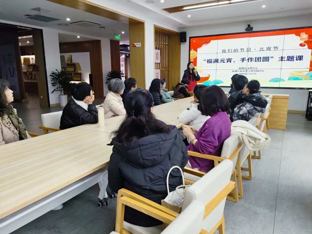 2月24 日上午,中心开展“包汤圆 做花灯”主题活动。工作人员提前备好糯米粉、馅料及花灯制作材料,参与活动的市民围坐一堂,揉面、搓馅、包制,一个个圆润饱满的汤圆在手中成型。随后大家动手制作花灯,折纸、粘贴、装饰,一盏盏精致的灯笼渐渐点亮。