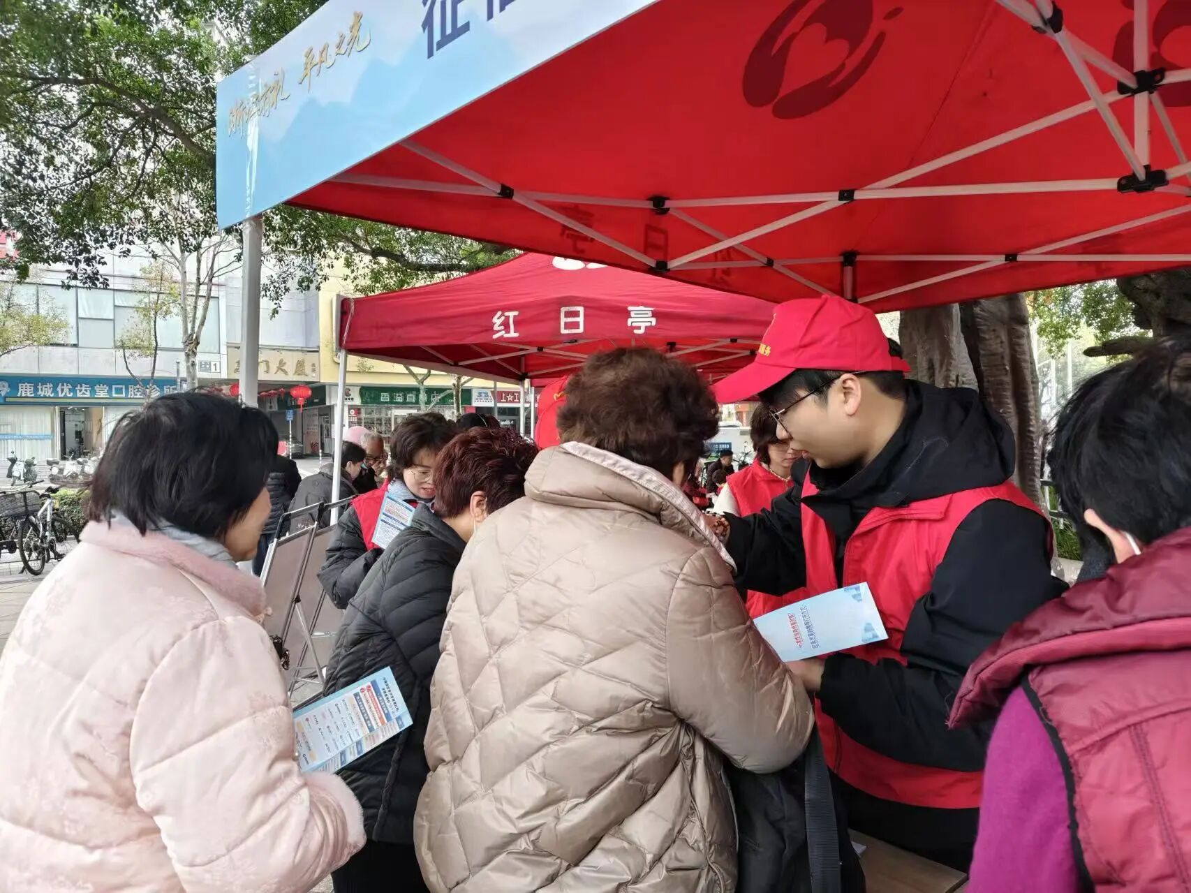红日亭的志愿者们,在“邻里便民”专区一如既往地忙碌着,他们不仅提供免费的公益理发、爱心修甲、公益磨刀等服务,还发起了“节约粮食 美味共享”活动,向过往居民宣传文明用餐、杜绝浪费的理念。此外,家电维修摊位用实际行动解决大家的生活小烦恼。