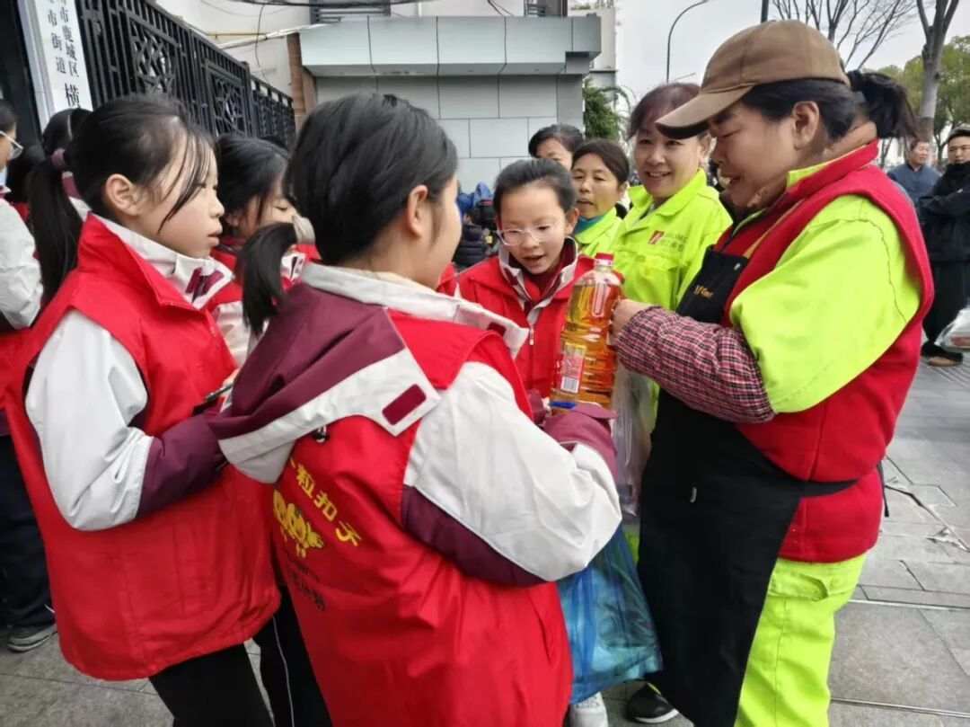 “孩子们太贴心了,还特意给我们买了新鲜菜,真暖心了。”3月8日上午,接过孩子们从菜市场买来的新鲜食材,鹿城区环卫工人张阿姨笑着擦了擦手,连声道谢。