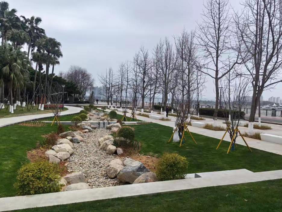 赓续塘河水乡文脉,重点推进河边区域小微空间改造,修复河道景观、完善休憩设施,构建人水和谐的生态环境。推进仓根河、鹿城之光南侧等口袋公园建设,实施江滨带状公园旱溪改造,破解积水蚊虫难题,优化景观与公共服务设施;升级锦绣路河边绿地,串联滨河空间、新建廊架公厕,延续龙舟文化底蕴,让滨水空间成为市民休闲散步的优选之地。