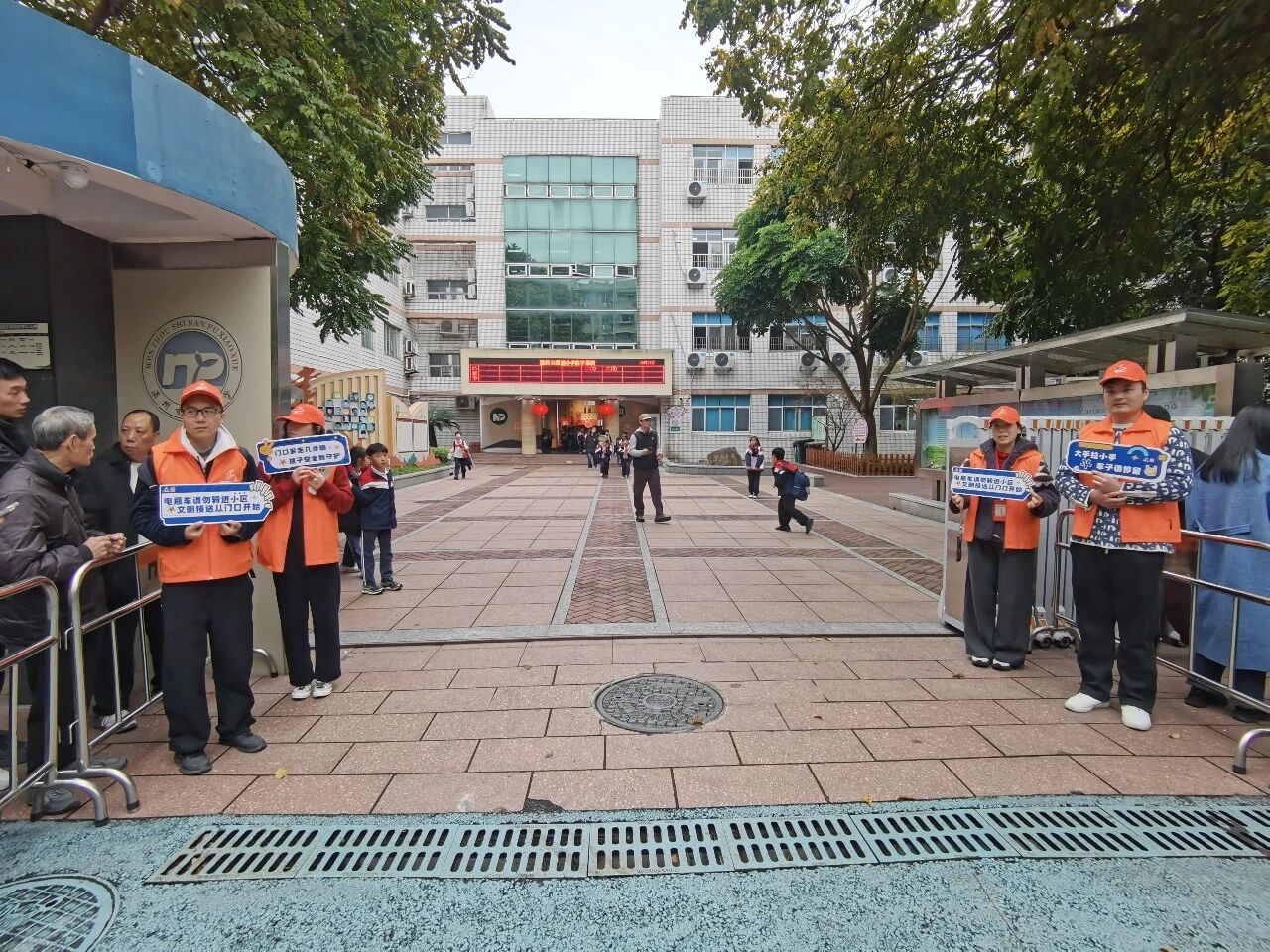 “为了孩子们的安全,电瓶车请停在外面,步行进去接孩子,感谢您的配合!”南汇街道南浦八区“文明微管家”联合南浦小学、小区物业,开展校园周边交通疏导行动。志愿者们手持“文明接送”宣传牌,分守在学校门口、小区入口及周边主要通道,耐心劝导家长规范停车;教职工维持学生秩序,物业协助疏导车辆,三方默契配合,筑起“护学屏障”。“微管家”陈阿姨表示,看到孩子们安全放学,再辛苦也值得。
